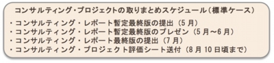 コンサルティング・プロジェクトの取りまとめ段階の締切などを整理しておくと次のようになります。