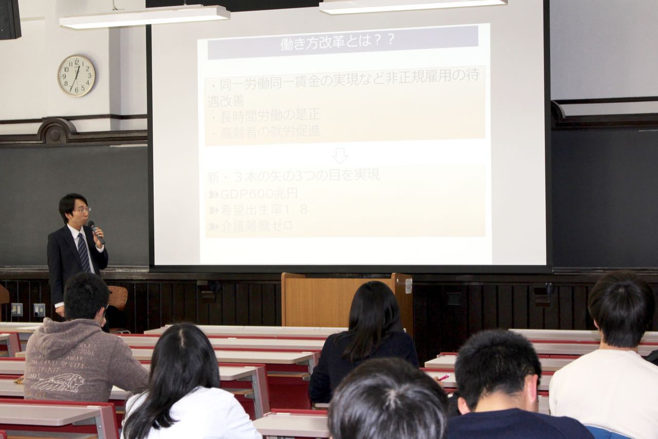 今回は、厚生労働省の方に、現在の日本における「働き方」の現状をデータに基づいて説明して頂いた上で、できるだけ望ましい働き方が実現するような取り組みについて話をして頂きました。実態の詳しい説明のために、たくさんのデータや情報が用いられましたので、労働の問題や用語に馴染みがないと、少し理解が難しかったかもしれませんね。今後、本セミナーのタイトルにありますように、「18歳」の皆さんにも理解してもらえるように、主催者として工夫を重ねていきたいと思います。